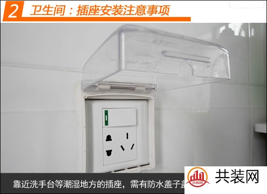 2、插座安裝注意事項(xiàng) 安裝在衛(wèi)生間的插座宜帶開關(guān)和指示燈,如果安裝在潮濕位置的插座,最好在插座表面安裝一個(gè)防水的蓋子,避免水汽進(jìn)入插座內(nèi),引起短路。