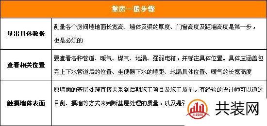 量房是裝修第一步,雖然一般都由設(shè)計(jì)師來量房,但是業(yè)主也要懂一些技巧,才能更好地進(jìn)行接下來的裝修工作。  1.須知量房的重要意義 許多業(yè)主對(duì)量房并不重視,統(tǒng)一量房可以讓自己更深入的了解到自己的房間布局,也方便了裝修公司以及設(shè)計(jì)師對(duì)房間的認(rèn)知,從而更好地完成設(shè)計(jì)。此外,量房需要精確到毫米級(jí),能夠確保裝修時(shí)線路以及管道精確鋪設(shè)。 2.量房的收費(fèi)情況 一般都是請(qǐng)?jiān)O(shè)計(jì)師來量房,一般一次100元左右。如果量好房,業(yè)主選擇這家裝修公司設(shè)計(jì)、施工,則這100元自動(dòng)轉(zhuǎn)化為定金;如果量好房就結(jié)束了,則這100元就是量房的費(fèi)用。 3.量房順序有講究 量房前大概巡視下每個(gè)房間,做到心里有數(shù)。然后從最靠近大門的空間開始進(jìn)行逐一測量。手中一定要做好記錄,確保每一個(gè)測量數(shù)據(jù)的對(duì)應(yīng)。 4.裝修量房一般流程 ?、?準(zhǔn)備量房工具 量房時(shí)基本工具有卷尺(長度5米以上)、紙筆,還有相機(jī)、繪圖板、激光測量儀等。 ?、?繪制房間圖紙?jiān)诹糠壳坝浀脭y帶房屋戶型圖,如果沒有帶,可以現(xiàn)場畫出大概的平面結(jié)構(gòu)圖。巡視一遍所有的房間,了解基本的房型結(jié)構(gòu)。圖不需要太講求尺寸,只要能進(jìn)行數(shù)據(jù)標(biāo)記就行。 ?、?實(shí)施測量 首先,測量各個(gè)房間墻地面長寬高、墻體及梁的厚度、門窗高度及距墻高度; 其次,查看各種管道、暖氣、煤氣、地漏、強(qiáng)弱電箱,并標(biāo)注具體位置;最后,查看原墻面的基層處理質(zhì)量,判斷是否需要重新處理。  ④ 拍照留存底檔 最好在量房的時(shí)候能夠拍照作留底,有利于后期設(shè)計(jì)的準(zhǔn)確。 ?、?多與設(shè)計(jì)師溝通 量房時(shí),應(yīng)多和設(shè)計(jì)師進(jìn)行溝通,表達(dá)自己對(duì)房屋的構(gòu)想和要求。 Tips: ?、俜壳耙攘私夥课菟诘男^(qū)物業(yè),對(duì)房屋裝修的具體規(guī)定,例如在水電改造方面的具體要求,房屋外立面可否拆改,陽臺(tái)窗能否封閉等等,以避免不必要的麻煩。 ?、?有特殊之處要用不同顏色的筆標(biāo)清楚。 ?、?在全部測量完后,再全面檢查一遍,以確保測量的準(zhǔn)確、精細(xì)。 ?、?用卷尺測量長度的話,需要兩個(gè)人配合才行,否則很容易造成數(shù)據(jù)不準(zhǔn)確。 |