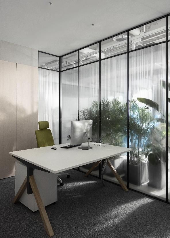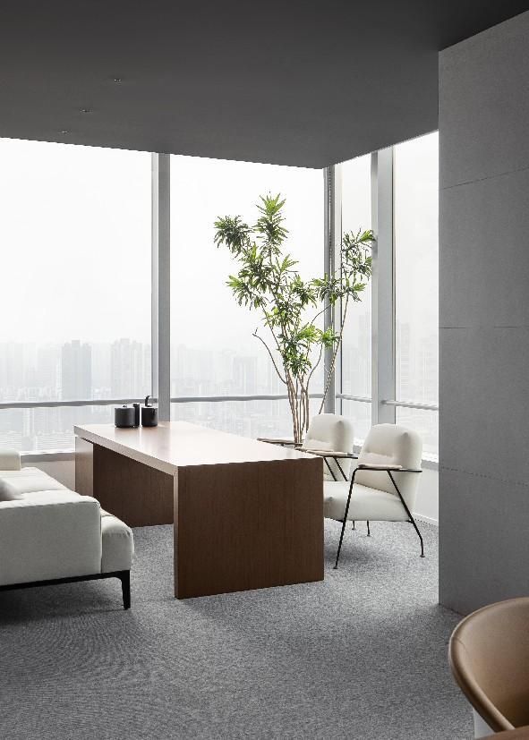 設(shè)計的構(gòu)想,是想打造一個現(xiàn)代環(huán)保,空間均質(zhì)、兼具藝術(shù)與高效的辦公場所,所以,從空間布局上,擯棄了格子間的傳統(tǒng)做法,盡量把不必要封閉的空間打開,讓窗外開闊的江景納入室內(nèi)。