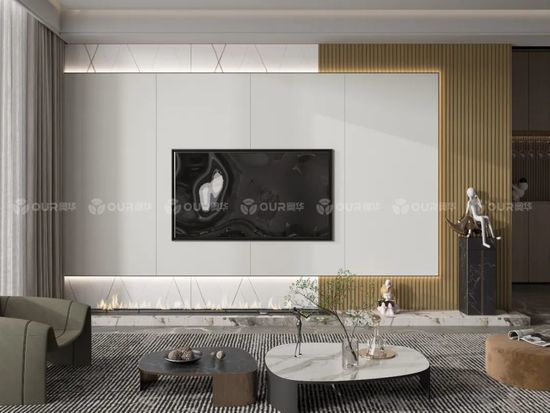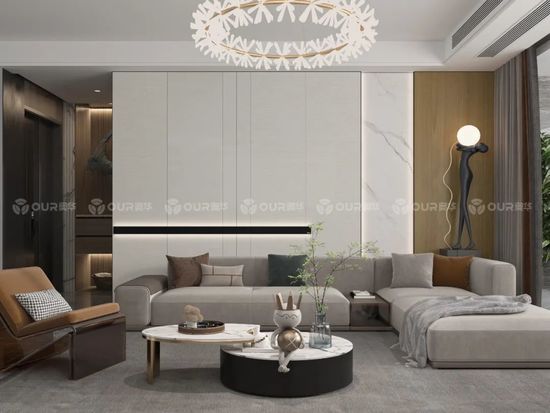 百變的空間 客廳沙發(fā)背景墻以黃栗柚為點睛之筆,輕輕觸摸墻體表面,能夠清晰地感受到木材的紋理,淡淡的暖色調(diào)讓整個家充滿溫馨。 沙發(fā)背景墻以黃栗柚格柵進行拼接過渡,木與大理石的輝映,克制而平衡。格柵理性的直線在娓娓道來的節(jié)奏感中,生發(fā)出更多的靈氣,像是身處大自然之中,自由呼吸。 應(yīng)用與優(yōu)勢 奧華黃栗柚逼真還原了木材細節(jié),高顏值的同時,耐磨好打理,觸感舒適不覺冰冷,且防撞、防潮、易清潔,更加適合有老人和孩子的家庭。 3000*880*10mm、2600*880*10mm兩款規(guī)格,黃金比例讓空間更加個性化、藝術(shù)化,百搭隨心。堅實耐用的奧華黃栗柚,為環(huán)保交出一份令人滿意的答卷。 圖片5