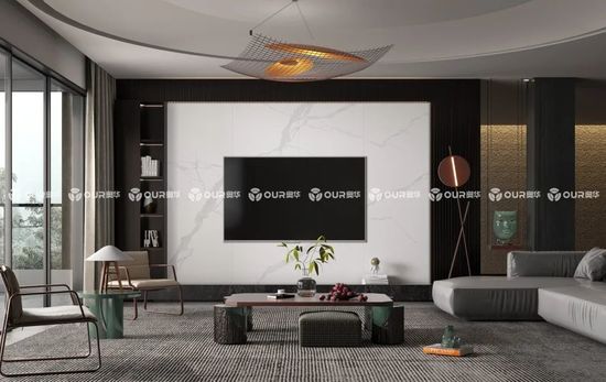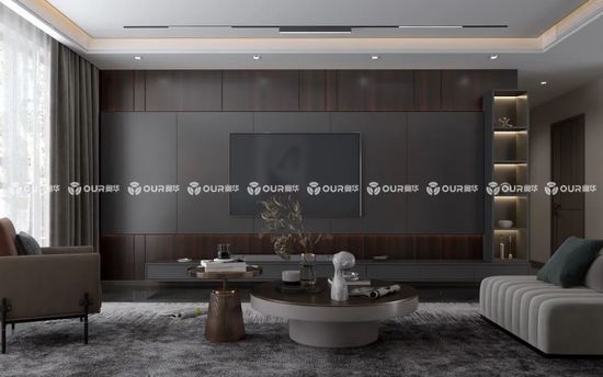 單獨(dú)將奧華黑喬木運(yùn)用在柜子上,與不同暖色系色調(diào)電視背景墻搭配更顯精致,陽(yáng)光的照耀之下還能展現(xiàn)出高級(jí)的美感。