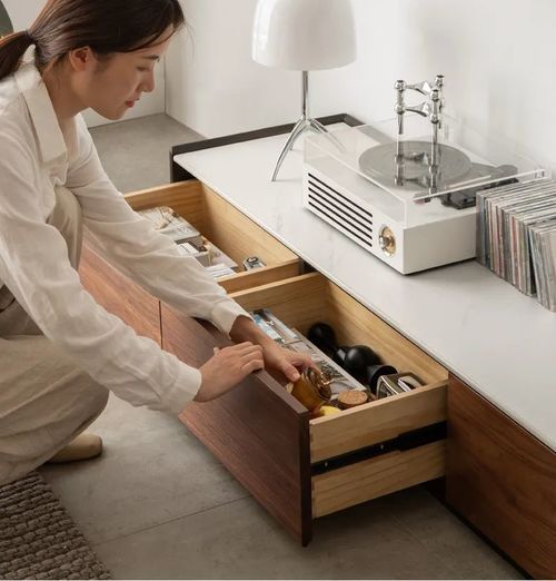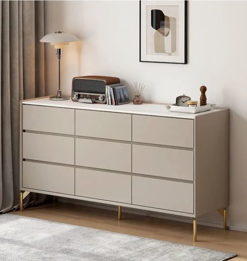 實木以金屬點綴 舞動輕奢 細節(jié)彰顯格調(diào) 金屬元素往往是輕奢風的點睛之筆,運用在輕奢風家具上亦是如此,黃銅金屬柜腳,在細節(jié)中提升空間格調(diào)。 低飽和度媞諾·斗柜,北美進口鵝掌楸+勞倫白金巖板,加以黃銅金屬腳點綴,如落落大方的姑娘,高顏值收納能手,九抽設(shè)計,分區(qū)儲物,寬敞桌面竟然還可以做電視柜使用呢!