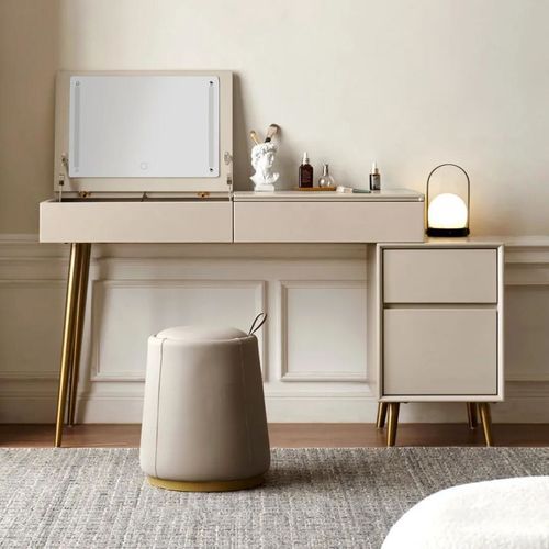柔和的意式米灰,搭配金屬質(zhì)感的化妝桌,輕奢有氣質(zhì),妝鏡夠大,鏡面帶LED燈,照亮熱愛生活與美妝的你。愛美輕奢范即刻體現(xiàn),還可以伸縮哦,精準匹配你的家!
