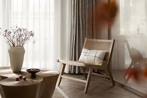 如清晨的一句“早安”,空間的初見,是安于一日三餐的用餐空間。光與這里的一切自然融入,勾勒出對日常生活的珍視。 起居活動空間,與餐廳互為對話。坐在這里,不疾不徐等待清晨到來,再現了留存在我們心里讓人舒適的情境。八點,光的疊加,一切褪去了涼意,也在帶動整個居所質樸的觸動。我們用了觸感溫和的材質如棉、麻、木,希望給生活帶去溫暖。設計取自大自然又還予生活本真。
