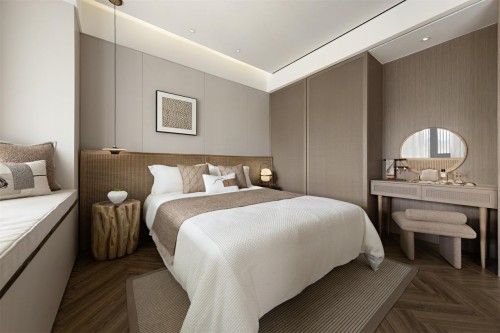 臥室設計更多是捕捉到生活的細膩觀察與心境,放進空間,自散發(fā)的來自大山的恬適,心靈也收獲了自在。