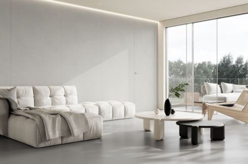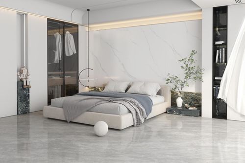 應(yīng)用產(chǎn)品:墻面EPZ30160120G暖霞、A+CZH00180260XL月桂珍珠、地面FZZ10475150GL清溪石(霜灰) 臥室整體采用了灰色作為主色,以橘色和白色為點(diǎn)綴,渲染出安逸祥和的氛圍。和諧素雅的空間基調(diào)與柔軟舒適的寢具相搭,自然質(zhì)樸,打造簡(jiǎn)約大氣又富有高級(jí)感的家居格調(diào)。大面積的落地窗確??臻g的采光度,光影斑駁成趣,不僅溫暖了空間,也溫暖了身心。 02 質(zhì)感設(shè)計(jì),干凈利落 質(zhì)感是鹽系風(fēng)格打造的一大秘訣。通過(guò)造型簡(jiǎn)約的功能性家具和裝飾材料,展現(xiàn)出材質(zhì)本身的質(zhì)感和線(xiàn)條美,讓人產(chǎn)生與家之間的情感共鳴,同時(shí)也將家居襯托得更有美感。
