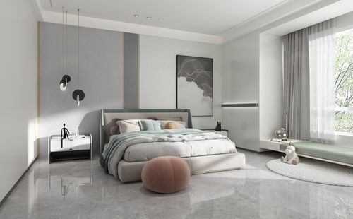 臥室區(qū)域 白灰搭配,是經(jīng)典的高級(jí)配色。灰色地磚沉穩(wěn)內(nèi)斂,白色墻磚平靜柔和,兩者搭配極具品質(zhì)感,輕松營造出端莊優(yōu)雅、美觀大氣的空間,讓家更加具有親和力與感染力,符合當(dāng)代年輕人的審美與需求。 多元組合,時(shí)尚獨(dú)特