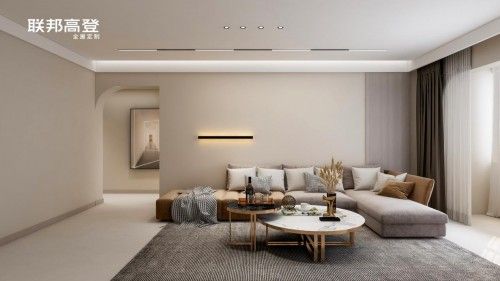 素雅的色系搭配,恰到好處的留白遐想,灰色地毯與L型布藝沙發(fā),散發(fā)舒適居家感,暖意融融。