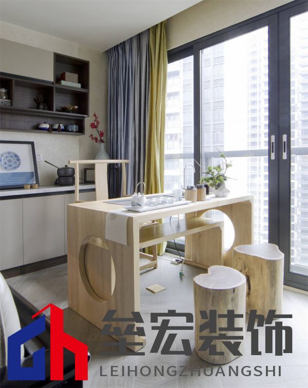 本案例三口之家,業(yè)主女兒國外留學(xué),基本上業(yè)主夫妻兩人居住,案例利用了現(xiàn)代的表現(xiàn)手法來打造東方美學(xué)的韻律,將中式元素與現(xiàn)代時(shí)尚巧妙糅合,正是目前社會(huì)都市精英圈層所追求的雅致生活,中式素雅、氣質(zhì)之美。 一切以功能出發(fā),注重空間收納和人文情懷。為了滿足男女主人各自喝茶和品酒的愛好,設(shè)計(jì)師重新規(guī)劃了陽臺(tái)的布局,利用落地推拉窗的形式把原有的兩個(gè)陽臺(tái)納入了客餐廳的空間,增加了茶室和品酒區(qū),不但滿足了功能和室內(nèi)的采光,而且又把室外的景觀引入室內(nèi),表現(xiàn)出人與自然的和諧之美,美不勝收。餐廳酒柜時(shí)尚簡(jiǎn)約,以中式的韻去融合客廳的味。背景墻的山水硬包更是使整個(gè)客廳靈動(dòng)有神,東方之美。