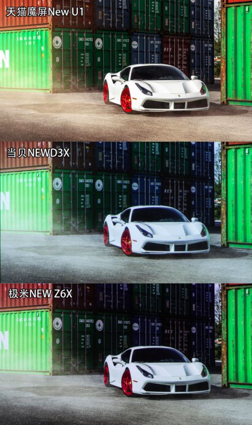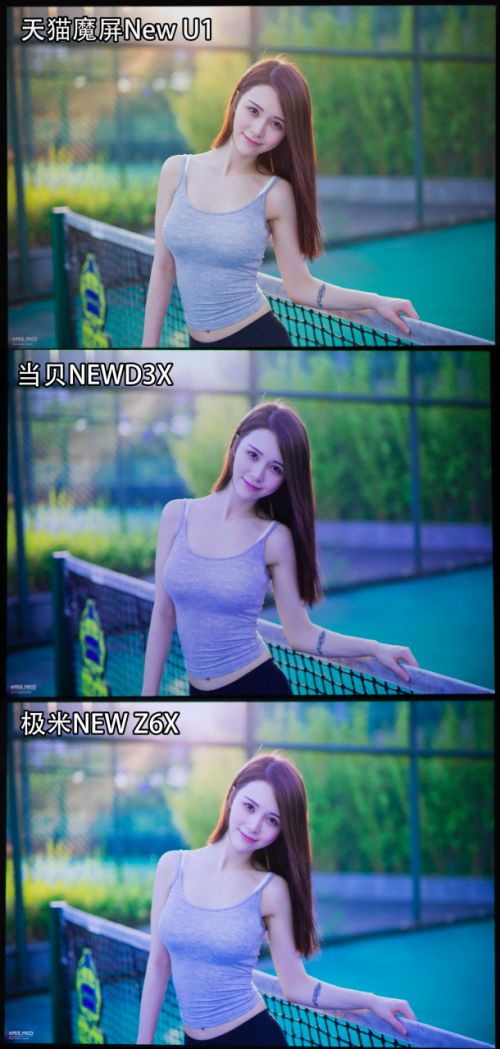 從上圖中幾款投影儀的投放畫(huà)面來(lái)看,天貓魔屏New U1的色彩偏暖,也比較明亮,畫(huà)面中沒(méi)有出現(xiàn)虛化的現(xiàn)象,邊角也沒(méi)有出現(xiàn)太大的變形狀況。極米NEW Z6X和當(dāng)貝NEW D3X色調(diào)則要偏冷一些。