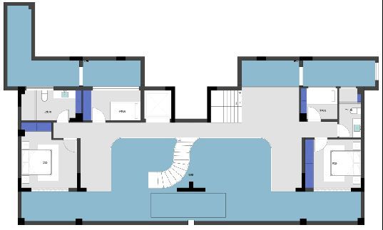 改造后:夾層 夾層則保留了2個(gè)客房和2個(gè)保姆間。夾層的設(shè)計(jì)上也是“根”的精髓體現(xiàn)。