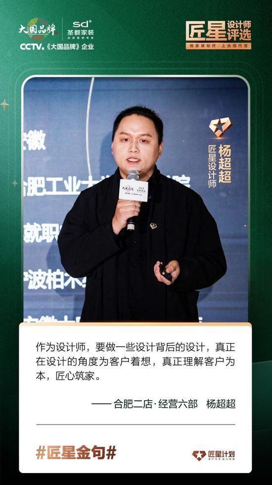 | 都說設(shè)計(jì)源于生活,那在圣都“匠星設(shè)計(jì)師”楊超超的眼里,設(shè)計(jì)的本質(zhì)是什么樣的呢?我們有幸采訪到圣都家裝主辦的“2022匠星設(shè)計(jì)師評選總決賽”中的這位設(shè)計(jì)新星,通過近距離的對話,讓我們一同感受設(shè)計(jì)思想的火花。