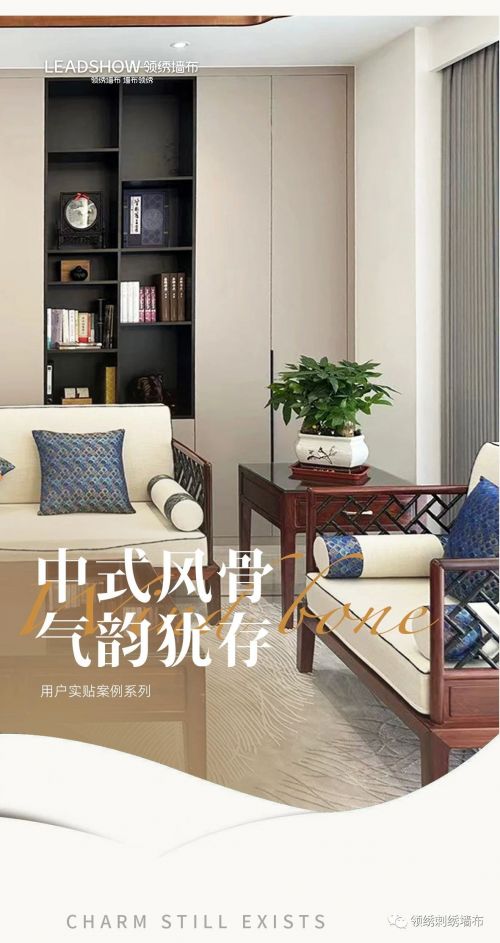 中式風(fēng)骨,樸素光環(huán)下的氣韻猶存 很多人都喜歡大氣沉穩(wěn)的中式家居風(fēng)格,其最大特點(diǎn)就是文化,根據(jù)裝飾所表現(xiàn)出來(lái)的傳統(tǒng)古韻流淌著悠久而又濃厚的歷史。近年來(lái)流行的新中式既保留了充滿東方韻味的中式元素,又完美地和現(xiàn)代時(shí)尚簡(jiǎn)約結(jié)合,這種設(shè)計(jì)風(fēng)格在讓人回歸初心的同時(shí),又能感受著現(xiàn)代生活的簡(jiǎn)便,讓家變得更加靈動(dòng)有趣,很受年輕人的喜愛(ài)。 此套實(shí)景案例由蘇州高新區(qū)橫塘紅星美凱龍領(lǐng)繡墻布提供,整屋用了四款產(chǎn)品:《蓬蓽生輝3》、《菲琳24》 、《蓬蓽生輝2》和《悅律波普》,上墻效果絕佳,每一幅都能完美適配于每個(gè)空間,一起來(lái)感受獨(dú)具匠心的東方雅韻!