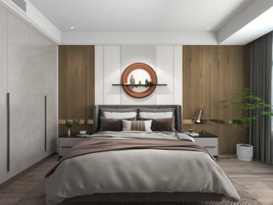 臥室 臥室的設(shè)計(jì)同樣秉承輕奢風(fēng)的理念。有著非常個(gè)性化設(shè)計(jì),特別是奧華·月牙白格柵板和搭配的裝飾畫(huà),最后呈現(xiàn)出的奢華效果,既有視覺(jué)享受,又能讓人享受生活,身心都能得到滿足才是最重要的。