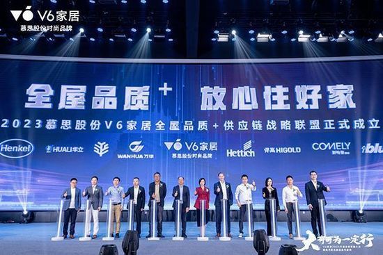 △V6家居×帆書聯(lián)名書香系列新品正式戰(zhàn)略發(fā)布 家居品牌跨界聯(lián)合早已不是新鮮事,但以往的跨界合作脫離不了聯(lián)合設計單品的局限,V6與帆書的深度合作,突破單一模式,實現(xiàn)理念、資源、文化再創(chuàng)造的深度交融,無疑為家居企業(yè)跨界合作建立了可行性高、可持續(xù)性強的全新樣板。 V6家居全屋品質(zhì)+供應鏈聯(lián)盟啟動,硬實力支撐品牌引領地位 在整裝成為家居建材產(chǎn)業(yè)潮動萬億市場新賽道的大環(huán)境下,行業(yè)走向共生共贏的整合浪潮是必然規(guī)律。 發(fā)布會現(xiàn)場,由優(yōu)居研究院院長張永志老師主持,V6家居總經(jīng)理劉院之和V6家居9位優(yōu)秀供應鏈代表出席的V6大家居供應鏈戰(zhàn)略論壇,共同探討了“全屋品質(zhì)+ 放心住好家”話題,各位嘉賓從V6家居戰(zhàn)略出發(fā),對V6家居品牌定位、如何提高供應鏈整合能力、精細供應鏈管理、提供符合終端目標用戶的整裝需求、實現(xiàn)技術創(chuàng)新、供應鏈企業(yè)如何與V6大家居協(xié)同創(chuàng)新、如何實現(xiàn)差異化發(fā)展等方面進行深度探討。 隨后,2023慕思股份V6家居全屋品質(zhì)+供應鏈戰(zhàn)略聯(lián)盟啟動,為V6大家居“全屋品質(zhì)+ 放心住好家”的品牌戰(zhàn)略提供堅實保障。