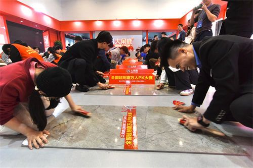 大角鹿展館遵循中國(guó)古建筑營(yíng)造法則,采集經(jīng)典的故宮紅色,融合了簡(jiǎn)約而出挑的造型,呈現(xiàn)堂皇端莊、宏偉壯觀的視覺(jué)效果。大角鹿本次展會(huì)重點(diǎn)展示的柔光磚,獨(dú)創(chuàng)“柔光肌膚”國(guó)家專利技術(shù),同時(shí)運(yùn)用了“超耐磨鉆石釉”技術(shù),解決了耐磨性和不易清潔的問(wèn)題,高度迎合了高品質(zhì)家居生活人群的極致追求,吸引眾多領(lǐng)導(dǎo)嘉賓、媒體、消費(fèi)者、代理商前來(lái)參觀,成為晉江陶博會(huì)人氣王。 瓷磚好不好,磨磨就知道大角鹿超耐磨萬(wàn)人pk大賽燃爆晉江