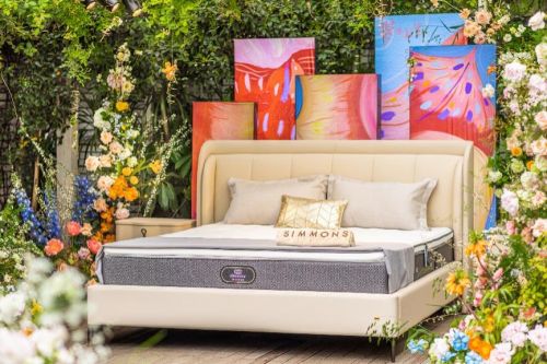 藝術(shù)家對談 此次Simmons®席夢思邀請楊婉共創(chuàng)的“夢喚新生”作品,將被收錄于其極富個人特色的“綻放”系列油畫作品中。畫作采用粉、橘、紅為主色調(diào),描繪出“盛放的春日花朵”這一極具動感和活力的畫面意象,旨在通過積極明亮、層次豐富的春日色彩,融合“夢境”和“新生”的概念,為觀眾帶來一場充滿生命力的感官盛宴。 融匯科技與美學(xué),承托奢享好夢 品牌更將盎然春意“搬”進了活動現(xiàn)場——Simmons®席夢思Diamond金鉆系列Bliss博利斯奢華床墊重磅亮相,希望以一葉銀杏,邀在場嘉賓擁攬四季好眠。“Bliss博利斯”一詞代表著“歡樂,天賜之福”的美好祝福,床墊表面的“銀杏”紋樣與現(xiàn)場夢幻的花植裝置藝術(shù)相映成趣,一花一葉、一床一柜,皆具靈性,打造出一隅高格調(diào)的家居空間。