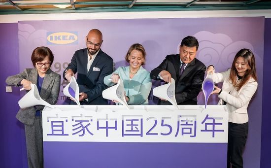 出席嘉賓正式啟動宜家中國25周年慶典暨“限定‘家’年華”展覽 上海市外商投資協(xié)會秘書長范紅女士,宜家中國高級副總裁弗朗索瓦•勃朗特,瑞典駐上海(大使銜)總領事Marie-Claire Swärd Capra女士,上海市商務委員會二級巡視員劉太秋先生,宜家中國副總裁阮林娟(出席人員從左至右) “去年我們發(fā)布了全新的本土化品牌定位——家 因你而生,這是我們積極傾聽中國消費者需求,敏銳洞察中國消費市場趨勢的重要成果。我們希望可以在這個品牌定位的引領下,和中國大眾一同探索、創(chuàng)造并延續(xù)美好生活的更多價值和可能,從而給生活更多值得,不止 25年。 ”宜家中國副總裁阮林娟則說道。 深耕中國市場 創(chuàng)造長期價值 中國是宜家全球最重要的市場之一,通過不斷深化和優(yōu)化本土化策略,宜家希望為中國消費者創(chuàng)造美好生活的無限價值。帶著深耕中國市場的長期信心,通過實行以“未來+”戰(zhàn)略為代表的本土化戰(zhàn)略,宜家中國聚焦數(shù)字化、全渠道拓展、居家生活等關鍵領域,持續(xù)發(fā)力并實現(xiàn)了一系列里程碑式的成就,為其在未來的發(fā)展奠定了堅實的基礎。