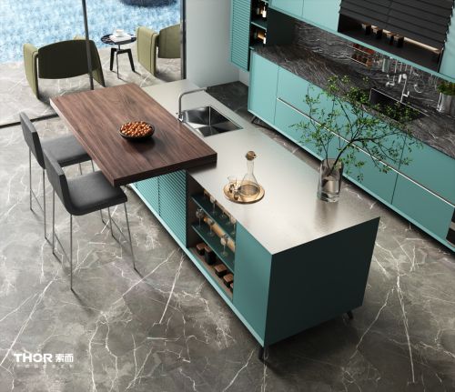 產(chǎn)品優(yōu)勢 為了適應市場需求,THOR索而不斷加快發(fā)展腳步,以健康環(huán)保、品質(zhì)感強、防水防火的304食品級不銹鋼為基材,從單一的櫥柜品類逐漸擴大至衣柜、衣帽間、酒柜、浴室柜、陽臺柜等整家產(chǎn)品,讓消費者能夠享受一體化定制服務。