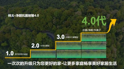 帥太品牌創(chuàng)立21載,對(duì)環(huán)保健康始終高度重視,2023年全新推出的凈醛抗菌耐馨板,打響凈醛抗菌保衛(wèi)戰(zhàn)!從環(huán)保、科技、時(shí)尚的研發(fā)理念到健康整家,從單產(chǎn)品環(huán)保到整家環(huán)保的健康維度劇變。 帥太凈醛抗菌耐馨板 引領(lǐng)家居健康革命 帥太品牌在創(chuàng)始之初就以環(huán)保、科技、時(shí)尚的產(chǎn)品研發(fā)理念,2011年帥太櫥柜推出之初,就本著為消費(fèi)者打造綠色健康的產(chǎn)品,率先在櫥柜行業(yè)中推出“抗菌板”,深受消費(fèi)者的熱捧!