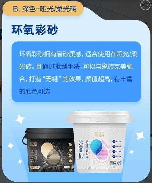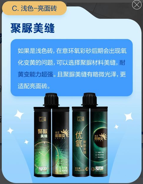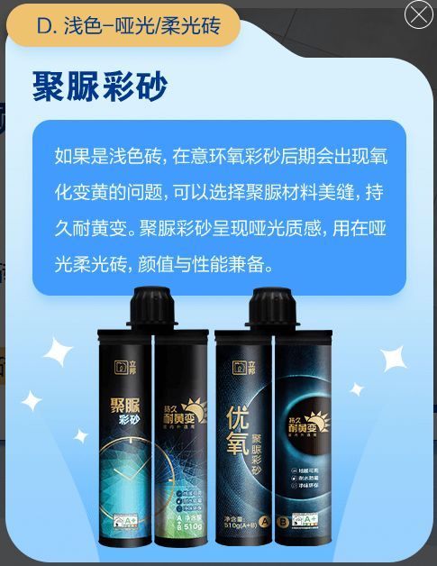 美縫選購(gòu)記住要點(diǎn) 總的來(lái)說(shuō),光照?qǐng)鼍岸嗟耐扑]聚脲材質(zhì)美縫,對(duì)顏值有需求的則選環(huán)氧材質(zhì)美縫。 這里推薦pick立邦的美縫產(chǎn)品,實(shí)力“抗打”,口碑“不塌房”。 怎么樣,美縫選擇技巧,你get到了么? |