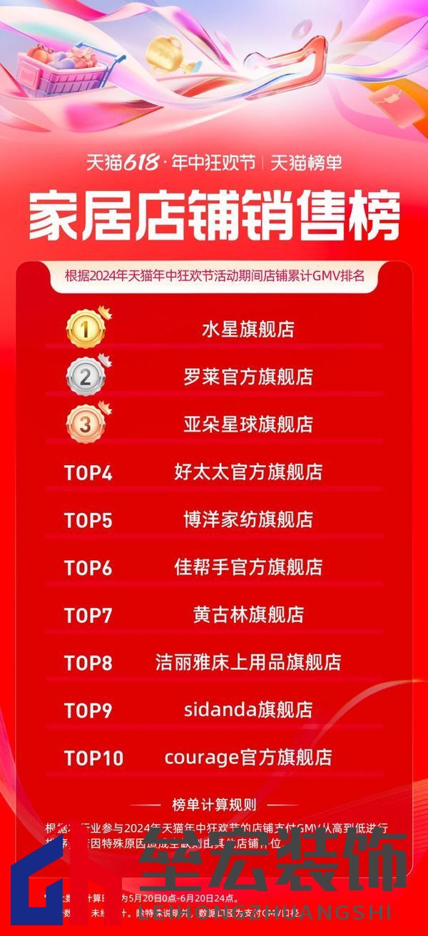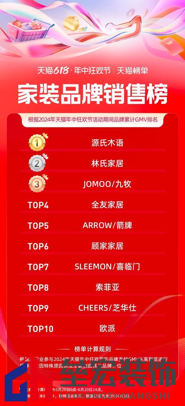 | 日前,天貓618全周期(5.20-6.20)品牌成交排行榜發(fā)布,家享生活、3C數(shù)碼、玩具潮玩、健康等行業(yè)的領跑品牌、商家出爐。 今年天貓618取消預售,現(xiàn)貨開賣,截至6月18日24點,365個品牌在天貓618成交破億,超36000個品牌成交翻倍,品牌在天貓618實現(xiàn)上半年最大的生意爆發(fā)。 家電家裝家居迎來品牌爆發(fā)式增長,開賣首日就有119個單品成交過千萬,截止6月20日,1868個品牌同比去年成交翻倍。 家電家裝品牌表現(xiàn)方面,源氏木語、林氏家居、九牧包攬家裝品牌榜前三;水星家紡、羅萊家紡、亞朵星球為家居品牌GMV排名前三選手;大家電品牌方面,海爾、美的、格力三大巨頭依次位列排名前三;美的、戴森、追覓登上小家電品牌銷售榜前三名。 據(jù)悉,今年天貓618,淘寶天貓堅持“用戶為先”,致力“品牌增長”,升級88VIP權益、打通淘寶天貓滿減;并作出史上最大力度投入,加投150億的紅包、品類券。品牌的翻倍增長是“用戶為先”的自然結(jié)果。 以下為泛家居行業(yè),天貓618全周期(5.20-6.20)品牌成交排行榜:
