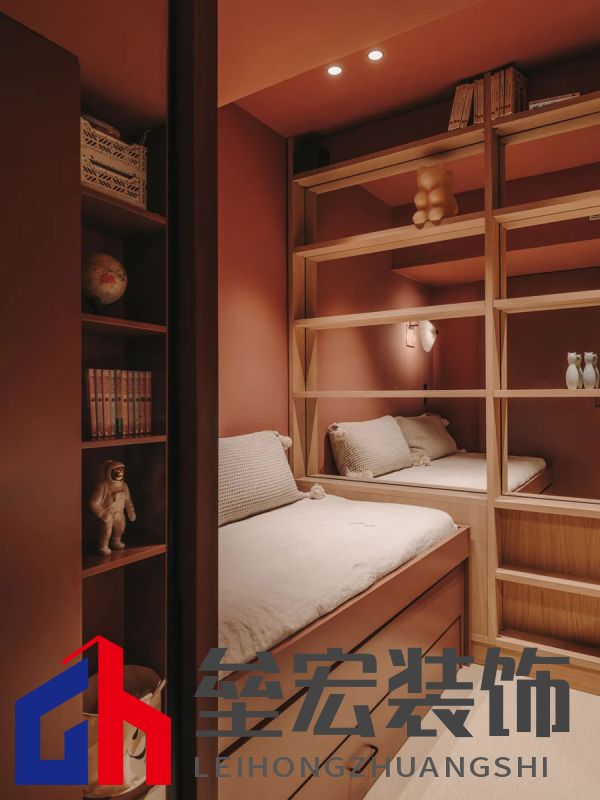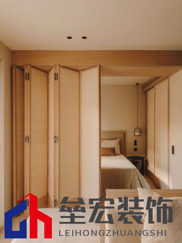 主臥室通過滑動折疊門與起居區(qū)隔開,確保隱私的同時保留開放感。隱藏在書架后的門通向浴室和第二間臥室,為空間增添了巧妙的層次感。