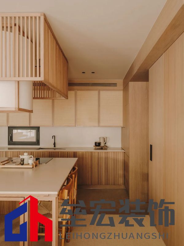 開放式廚房設計簡潔而高效,強調實用性與美觀的結合。自然木材料的使用增強了溫馨感,提供一個舒適的烹飪環(huán)境。