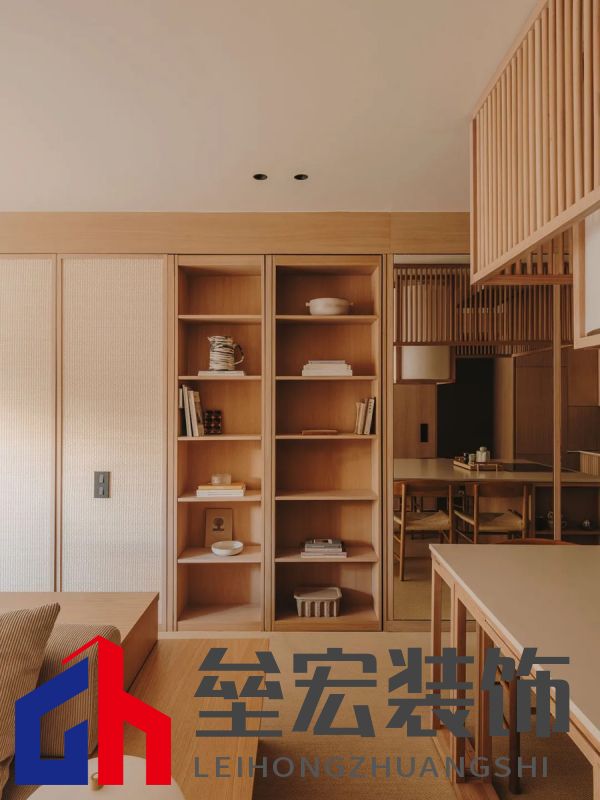在餐廳旁邊,設計師巧妙地加入了一個隱藏式儲物間,既保持了空間的簡潔整潔,又提供了實用的存儲功能。儲物間的門與置物架結合,使其在視覺上融入整體設計,幾乎不被察覺。