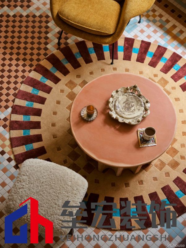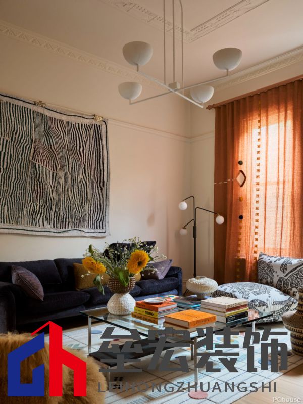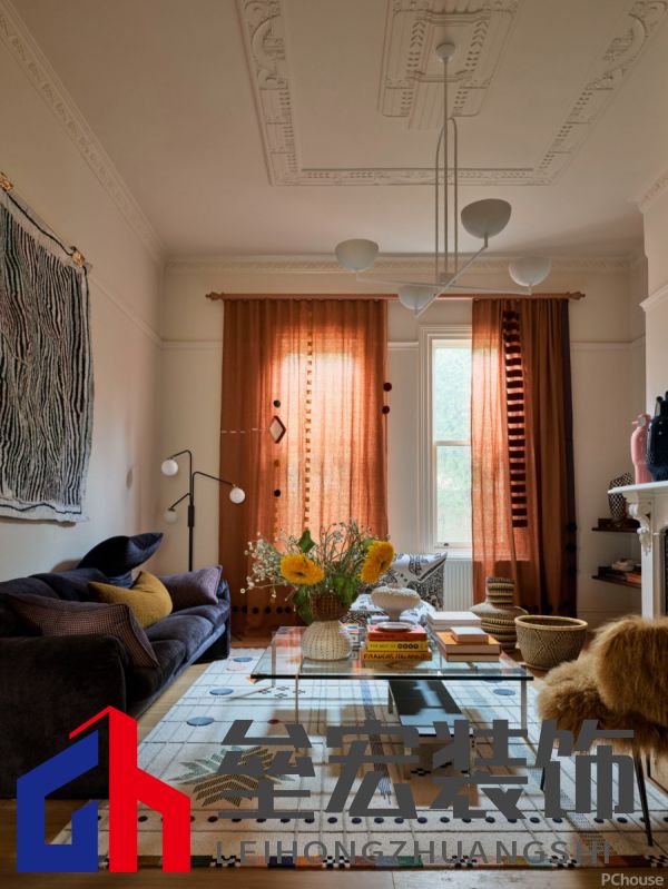 夏季客廳為了增強(qiáng)對比,設(shè)計(jì)師選擇了姜黃色的窗簾,并在地毯上引入了抽象幾何圖案,與整個(gè)住宅的設(shè)計(jì)語言一致。