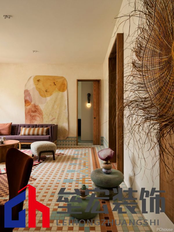 主臥室內(nèi),手工刺繡的床旗是設(shè)計(jì)師?Louis?Barthélemy?的定制作品,靈感來源于埃及神話,帶有一種俏皮的象征意義。房間內(nèi)的家具具有懸浮的特質(zhì),定制木質(zhì)控制臺輕輕懸浮在空中,增添了空間的輕盈感。燈具的選擇也是設(shè)計(jì)中的重要元素,串珠壁燈為臥室增添了一抹神秘與異國風(fēng)情。衛(wèi)生間極具現(xiàn)代感且富有文化內(nèi)涵。土耳其浴室風(fēng)格的瓷磚裝飾為空間增添了異國情調(diào),而模塊化的石盆則以簡潔的形式漂浮在櫥柜上方,增強(qiáng)了空間的流線感。主浴室的凹槽石榴石吊燈為房間增添了一抹奢華,結(jié)合了維多利亞時(shí)代的細(xì)節(jié)與中東風(fēng)格的元素。 庭院設(shè)計(jì)打開了視線通道,使得從入口到花園的空間變得通透。庭院內(nèi)的瓷磚圖案延續(xù)了室內(nèi)的幾何主題,并以像素化的地板設(shè)計(jì)為主,將室內(nèi)與戶外無縫連接。 |