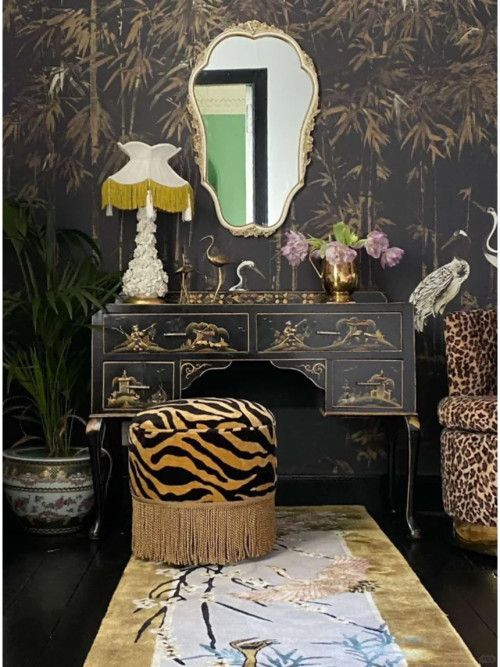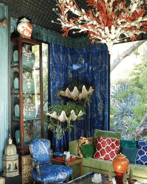 Wendy?Morrison的極繁主義之家,充滿幻想的東方元素。同時(shí)她還會(huì)在設(shè)計(jì)中考慮到風(fēng)水方面知識(shí),用以平衡空間的自然元素。 ? 極繁主義始終在物質(zhì)與精神的拉鋸戰(zhàn)中尋找平衡點(diǎn)。但設(shè)計(jì)中的繁復(fù)之美,絕非沒有章法的物質(zhì)堆砌,看似元素間撕扯拉鋸,可是暗藏邏輯在其中。 美學(xué)歷程螺旋上升,家的美學(xué)也一樣,所謂的節(jié)制與放縱永恒辯證,此刻不是永恒,但此刻的感受卻可以永恒存在。 極繁主義被重新“愛上”也許是因?yàn)楣训昧讼M麚Q種風(fēng)格,也或許真的是厭惡了所謂的條框與冰冷的舒服,想要尋找真正的自我。 極繁主義強(qiáng)調(diào)“大膽、豐富、層次感”,通過色彩、圖案、材質(zhì)和裝飾品的疊加,打造充滿個(gè)性與視覺張力的空間。 但極繁主義不是毫無頭緒的,無論多豐富的空間里,依舊是能在其中找到視覺核心,其他的存在皆是圍繞而而生的,而在混搭中的調(diào)性上的一致,也是保證more?is?more能夠真的實(shí)現(xiàn)美的關(guān)鍵,你會(huì)發(fā)現(xiàn)暗藏在其中的主線,些許的留白,更是那神來之筆。 01° 出挑的色彩 豐富、層次、點(diǎn)睛 說起極繁人們80%都會(huì)先想到色彩,或許是高飽和度的,也可能是對比強(qiáng)烈的色彩組合,如寶石藍(lán)、祖母綠、深紅、亮黃等,多種撞色也經(jīng)常會(huì)出現(xiàn)。 我們還可以看到在墻面、家具、軟裝的色彩疊加,產(chǎn)生豐富的視覺層次感,也有在基礎(chǔ)色調(diào)中加入小面積跳色來制造視覺焦點(diǎn)。
