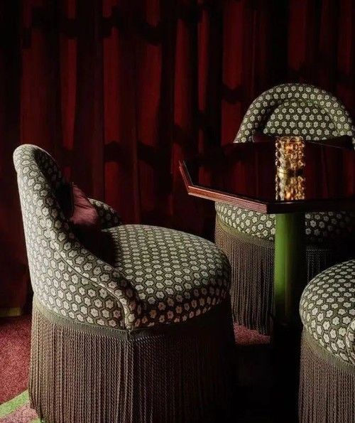 ?Martin?Brudnizki 02° 戲劇的沖突 那些看似不合理的“碰撞” 花卉、幾何、動(dòng)物紋、復(fù)古印花等不同圖案混搭,無論是條紋墻紙搭配波西米亞地毯,或格紋沙發(fā)與熱帶植物壁畫結(jié)合。 天鵝絨、絲綢、金屬、藤編、大理石等不同材質(zhì)的碰撞,增強(qiáng)空間質(zhì)感,絲絨沙發(fā)搭配黃銅茶幾,或木質(zhì)書架與鏡面裝飾結(jié)合,材質(zhì)間的沖突感。很多時(shí)候還會(huì)看到繁復(fù)的壁紙、壁畫或裝飾線條(如護(hù)墻板、石膏線)打造“視覺轟炸”效果。 ?