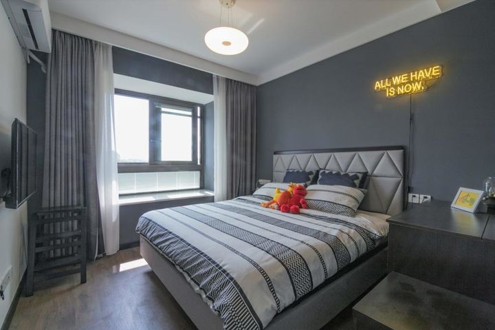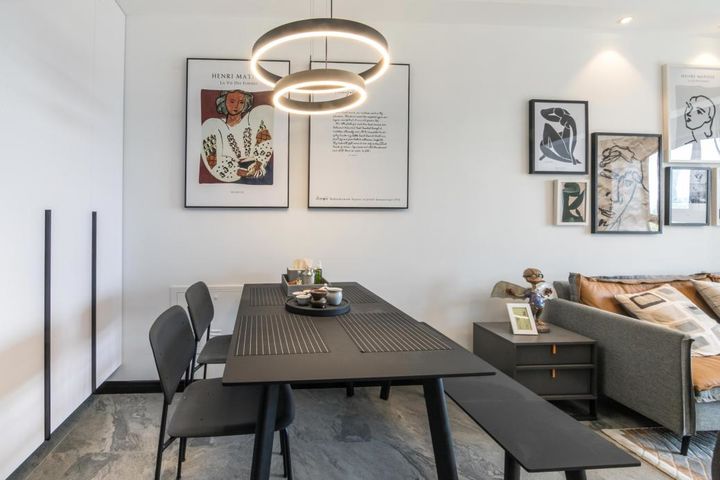 現(xiàn)代簡約風(fēng)更講究空間布局,色彩搭配,既要色彩呼應(yīng),又要整體和諧,很考驗設(shè)計師的審美和設(shè)計素養(yǎng)。 厭倦了華麗的裝飾,只想簡單地享受美食而已,那么如此般簡約的餐廳恰好適合。充滿藝術(shù)氛圍的掛畫打破沉悶與單調(diào),簡單大氣的餐桌搭配鮮艷跳躍的色彩,令每一次的就餐氛圍都仿佛置身藝術(shù)展身旁,不論是餐食還是藝術(shù)品,都值得回味。 臥室里,素色的搭配營造一份靜謐,一切都恰到好處地展現(xiàn)業(yè)主內(nèi)心對安靜、舒心的向往,每日清晨坐于榻上即可思考當(dāng)日穿搭,簡單的改變即能提升幸福感。