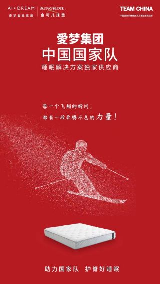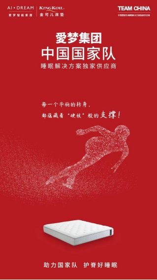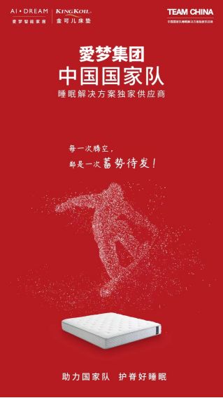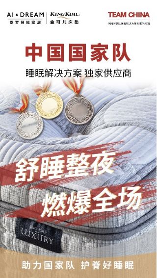 ??金可兒品牌所屬愛(ài)夢(mèng)集團(tuán),是TEAM CHINA中國(guó)國(guó)家隊(duì)睡眠解決方案供應(yīng)商。金可兒護(hù)脊好睡眠,助力中國(guó)國(guó)家隊(duì)出征!與此同時(shí),金可兒提醒您:賽事很精彩,觀賽注意勞逸結(jié)合,享受歡聚團(tuán)圓美好時(shí)光。