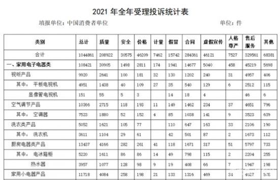 | ??日前,中國消費者協(xié)會公布了全國消協(xié)組織受理投訴情況的統(tǒng)計結果?!夺斂萍肌纷⒁獾?,根據(jù)2021年商品大類投訴數(shù)據(jù),家用電子電器類、日用商品類、食品類、服裝鞋帽類和交通工具類投訴量居前五位。其中,家用電子電器類投訴量達到10.8萬件,位居投訴榜首位。 ??有媒體注意到,消協(xié)統(tǒng)計的家用電子電器類產品,包括了相機、手機、PC,但即便去除這些品類,單純家電類產品的投訴也接近5萬件,規(guī)模十分龐大。 ??一般認為,家電產業(yè)經(jīng)過四十多年的發(fā)展,已經(jīng)非常成熟。無論是產品質量還是服務水平,都達到了一個成熟期。理論上說,用戶投訴量不應該居高不下。但實際情況卻是,家電類產品在歷年消協(xié)投訴榜上的位置都十分靠前,消費者的滿意度并不高。 ? 此外,在家用電子電器類產品投訴內容中,質量投訴和售后服務投訴最多,分別為3.1萬件和4.5萬件,占比分別為28.7%和41.7%, 超過7成的投訴指向了質量和售后服務。
