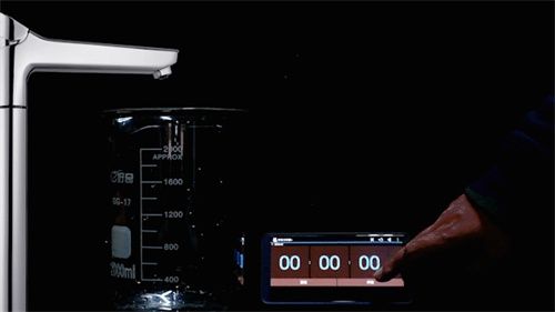 ??加熱超快 按需又節(jié)能 ??整機(jī)內(nèi)置了一個(gè)2L的304不銹鋼的真空內(nèi)膽,水凈化后進(jìn)入熱罐內(nèi)存儲(chǔ)、燒開(kāi)、保溫,用水時(shí)通過(guò)龍頭上的熱水按鍵取用。燒水是需要時(shí)間的,那這款產(chǎn)品在實(shí)際使用中又需要多長(zhǎng)時(shí)間燒開(kāi)一膽水呢?我們來(lái)測(cè)試重新補(bǔ)滿一膽水到燒開(kāi)所需的時(shí)間。