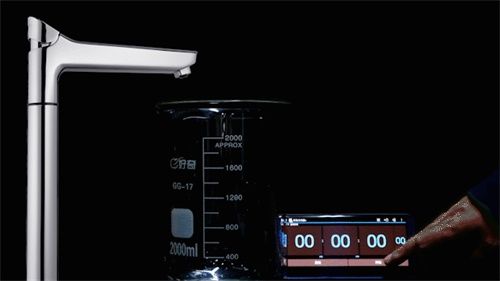 ??還有童鎖功能保障熱水取用安全,每次用熱水時(shí),需要先解鎖龍頭上的童鎖鍵,熱水才會(huì)流出;如8秒內(nèi)無(wú)操作,龍頭自動(dòng)鎖屏??磥?lái)是研究了熱水在實(shí)際使用中的習(xí)慣,為誤操作而導(dǎo)致的燙傷多了一道防護(hù)。 ??水流通暢 量大且規(guī)整 ??凈水機(jī)流量的大小,直接影響到消費(fèi)者的使用體驗(yàn),市面在售的很多品牌已經(jīng)把凈水機(jī)型號(hào)命名規(guī)則,從以前的加侖數(shù)命名變成流量命名規(guī)則,消費(fèi)者更直觀Get流量這一核心參數(shù),足可見(jiàn):出水流量已經(jīng)成為消費(fèi)者在選購(gòu)凈水機(jī)時(shí)一個(gè)重要指標(biāo)。那么就實(shí)測(cè)一下這款凈水機(jī)的凈水(冷)和熱水流量: