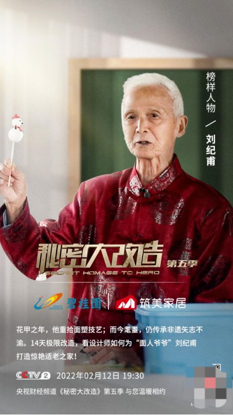 ??如今已是耄耋之年的劉紀(jì)甫老人,依舊為傳承面塑非遺忙碌奔波著。本期《秘密大改造》邀請到d尖設(shè)計(jì)師覃思,攜手碧桂園集團(tuán)旗下筑美家居,為這位86歲的非遺傳承人改善居住環(huán)境。