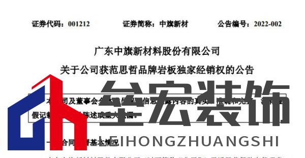 | 2月16日,中旗新材發(fā)布公告稱,于近日獲得意大利知名品牌范思哲巖板產(chǎn)品的獨家經(jīng)銷權(quán)。2月14日,中旗新材與由范思哲授權(quán)的巖板制造商 CERAMICHE GARDENIA ORCHIDEA SPA(簡稱“加德尼亞”)簽署了《獨家經(jīng)銷協(xié)議》。根據(jù)協(xié)議約定,中旗新材有權(quán)在中國區(qū)域(不包括港澳臺地區(qū))獨家代理銷售尺寸為163.5cm×323cm,厚度為12mm 和20mm 的范思哲品牌的巖板產(chǎn)品。