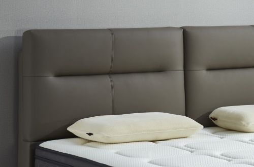 ??東寶床墊這款皮床外觀清新,造型簡(jiǎn)潔,在現(xiàn)代臥室中讓人眼前一亮。八個(gè)金屬高床腳,擁有12公分的床底高度,簡(jiǎn)潔中帶有一分輕奢感。 ??它的靈感來(lái)源于極簡(jiǎn)理念,沒(méi)有鮮艷的色彩,沒(méi)有繁雜的線條裝飾,柔和的莫蘭迪灰,給人一種安靜、清新的空間氛圍。