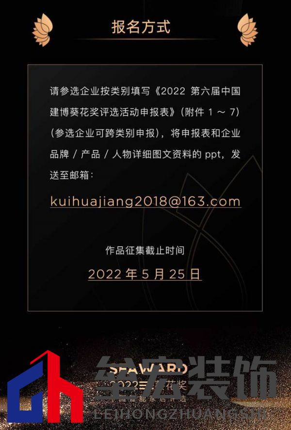 報名聯(lián)系人: 中國建博葵花獎評選聯(lián)合主辦單位 建博云網(wǎng)-劉璐寧 微信同電話:18926564224 中國建博葵花獎評選聯(lián)合主辦單位 網(wǎng)易家居-關(guān)光英 聯(lián)系電話:13697415102 統(tǒng)一郵箱地址:kuihuajiang2018@163.com