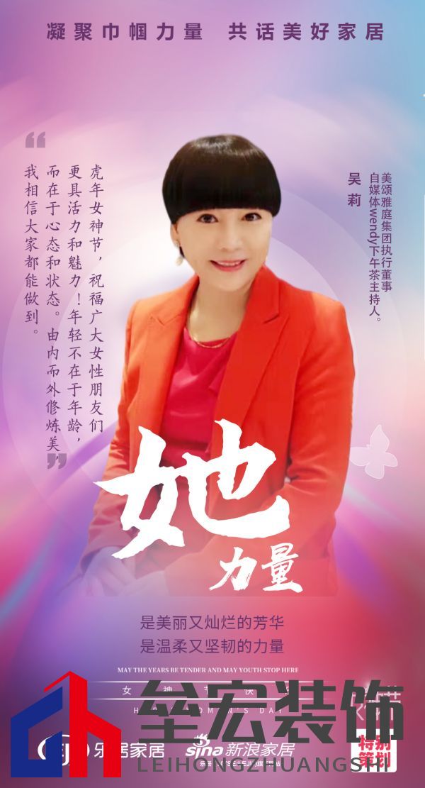 「虎年女神節(jié),祝福廣大女性朋友們更具活力和魅力!年輕不在于年齡,而在于心態(tài)和狀態(tài)。由內(nèi)而外修煉美,我相信大家都能做到」,美頌雅庭集團執(zhí)行董事、自媒體wendy下午茶主持人吳莉(wendy),在這個特別的日子里,與讀者共勉。 她們是自己的女王,更是這個時代的優(yōu)秀女性。在自己的崗位上,堅持著自我,影響著大家,營造廣大女性奮進新征程、建功新時代的良好氛圍,引領(lǐng)著時代獨特的巾幗風(fēng)采。 |