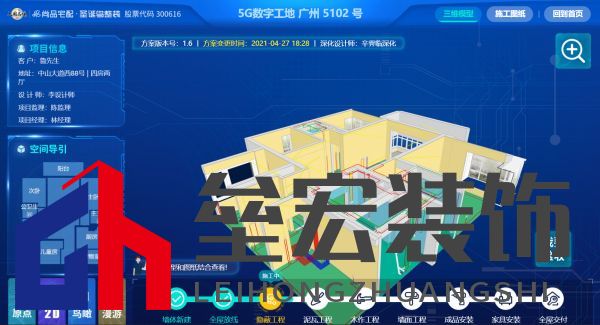 無論是隱蔽工程、裝修效果、裝修預(yù)算還是裝修工期,通過一次試裝,提前預(yù)警排雷,精算用料和報(bào)價(jià),滿意之后再施工,這樣能在很大程度上避免效果不滿意/質(zhì)量返工/不斷增項(xiàng)等問題。而且,試裝是免費(fèi)的,先試裝再實(shí)裝,相當(dāng)于花1次錢就能享受到“裝2次”的服務(wù)。 實(shí)裝新享,100%神還原 有了試裝加持,裝修等于成功了一大半了,而在實(shí)裝環(huán)節(jié),圣誕鳥整裝更有3大黑科技,確保試裝的效果100%落地。 首先是“5G數(shù)字工地”,通過BIM虛擬裝修后,進(jìn)入實(shí)裝階段,在每個(gè)裝修現(xiàn)場會放置一個(gè)5g數(shù)字工地指揮屏,利用機(jī)器指揮人的方式,施工工人只要點(diǎn)擊屏幕,便能查看到施工所有節(jié)點(diǎn)、施工圖紙與三維模型,施工工人依據(jù)指令施工,全屋1:1放線,嚴(yán)格按圖進(jìn)行軟硬裝施工,確保施工標(biāo)準(zhǔn)和施工工期,這樣一來就不用擔(dān)心裝修工人經(jīng)驗(yàn)不足導(dǎo)致裝修問題,在家輕輕松松就能把控施工效果!
