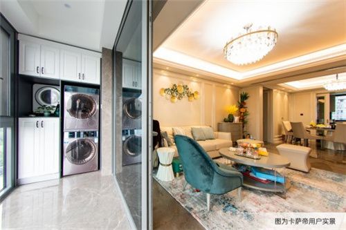 對于洗護場景而言,卡薩帝也依托嵌入式科技實現顛覆:洗衣機的純平嵌入,同樣實現了洗衣機前板與櫥柜純平一體,配合針對“纖維秩序”的五度數控科技,衣物輕松開啟“養(yǎng)護”之旅的同時更為陽臺空間的打造提供更多可能。