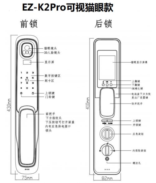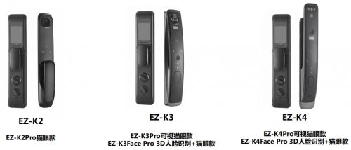 此外,EZ-K系列所有產(chǎn)品均自帶140°高清廣角攝像頭 ,內(nèi)置貓眼,3.5寸高清顯示屏 180天超長(zhǎng)續(xù)航。C級(jí)全銅鎖芯應(yīng)急開鎖,后鎖應(yīng)急把手快開,電機(jī)旋鈕手動(dòng)快開。 EZ-K系列的高階款產(chǎn)品——K3與K4的FacePro3D人臉識(shí)別+貓眼款,主要增加了3D人臉開門的解鎖方式,識(shí)別速度快、低功耗,有著業(yè)界公認(rèn)的安全性和良好的用戶體驗(yàn)。