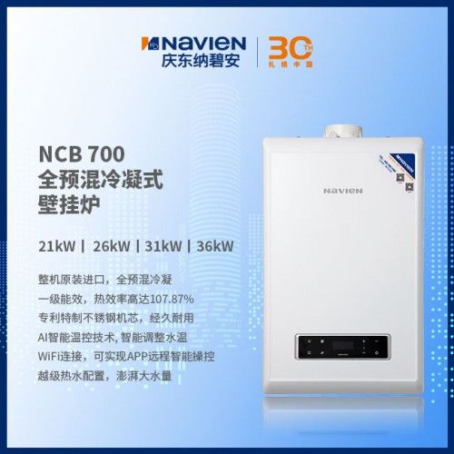 當然,NCB700最為重要的還是全預混冷凝技術,達到最佳空燃比,可以回收利用高溫煙氣中的熱量,熱效率高達107.87%,還有同向順流黑科技,也讓這款高端冷凝爐增加了技術色彩,同向順流可維護穩(wěn)定效率,大大減少后期維護成本。 全預混冷凝技術還讓NCB700做到了有害氣體的超低排放,氮氧化物排放低至23mg/kW.h,可以實現(xiàn)20%以上的節(jié)能減排,在保護環(huán)境的同時,也能有效為用戶節(jié)省燃氣費用,讓產(chǎn)品更具性價比,給用戶帶來了更好的使用體驗。NCB700采用金屬纖維燃燒器,配以微火苗燃燒技術,能夠進行寬幅水溫調(diào)節(jié)30-60℃,讓夏季用水不燙,給用戶保持舒適用水的體驗。 一直以來,慶東納碧安就是這樣不斷地向市場推出像NCB700這樣的新品,從而不斷迭代壁掛爐產(chǎn)品的相關技術。正是因為在技術和產(chǎn)品方面進行不斷的追求,慶東納碧安才能不斷發(fā)展,保持活力,持續(xù)為行業(yè)指引了產(chǎn)品創(chuàng)新的方向,成為了壁掛爐品牌商家中的典范。 參考賣點: