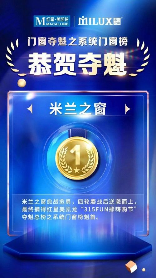 | 家居行業(yè)首個“現(xiàn)象級”頂流大促——紅星美凱龍“315FUN肆嗨購節(jié)”正式收官告捷,米蘭之窗登頂系統(tǒng)門窗榜品類奪魁榜榜首!本次活動紅星美凱龍集團(tuán)10億級資源投入,海陸空集結(jié)、全行業(yè)ALL IN,此次千大品牌共振的家居行業(yè)現(xiàn)象級消費(fèi)盛宴,米蘭之窗強(qiáng)強(qiáng)聯(lián)合紅星美凱龍,并肩協(xié)作,在戰(zhàn)斗中凝結(jié)友誼,奏響門窗最強(qiáng)音,燃勢打響2022營銷首戰(zhàn)!