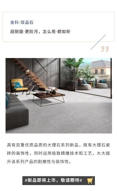 ??為充分滿足用戶的需求,金科瓷磚基于自身深厚的產(chǎn)品研發(fā)技術(shù)和高超的瓷磚生產(chǎn)水平,重磅推出本期新品“雙品石”,極致精雕工藝加持,打造用戶更優(yōu)的空間體驗(yàn)!