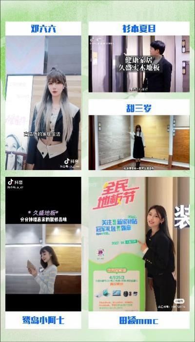 作為后浪年輕人的主要陣地,抖音和小紅書匯聚了眾多潮流時尚的年輕用戶,在這里,可以借助”2億人的生活經(jīng)驗”,在這里,可以“記錄美好生活”。 久盛地板為主張“健康是生活的一切標準”,傳達”實木地板也能打造潮流陣地“,倡導(dǎo)”在家的一隅天地,享受最自然醇正的美好春日生活“,特借助抖音和小紅書這類視覺直觀、玩法年輕化的大眾聚集地,邀請百位個性不同、需求不同、來自天南地北的網(wǎng)絡(luò)達人,參與進全民地板節(jié),在不斷創(chuàng)新潮流新品的同時,線上整合,以年輕姿態(tài)融入大眾視野,深化互動,解鎖家居營銷新體驗,給消費者更直觀地帶來更多高品質(zhì)、高顏值、高性價比的優(yōu)選地板。